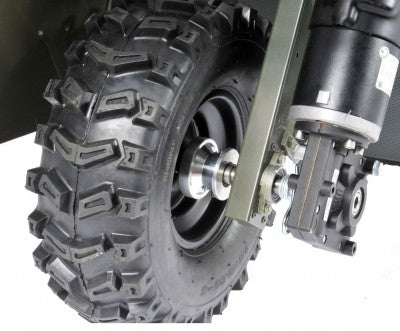 Precision engineered quick release drive hub. Brand new UK made LED intelligent durable hand control. New extra strength CNC front axle supports. New drop in bag system. New all-terrain tractor tyre. New extra torque 30.1 gearbox (we do not use hub motors as torque is nowhere near sufficient for difficult terrain). New custom Carp Porter cable clips.