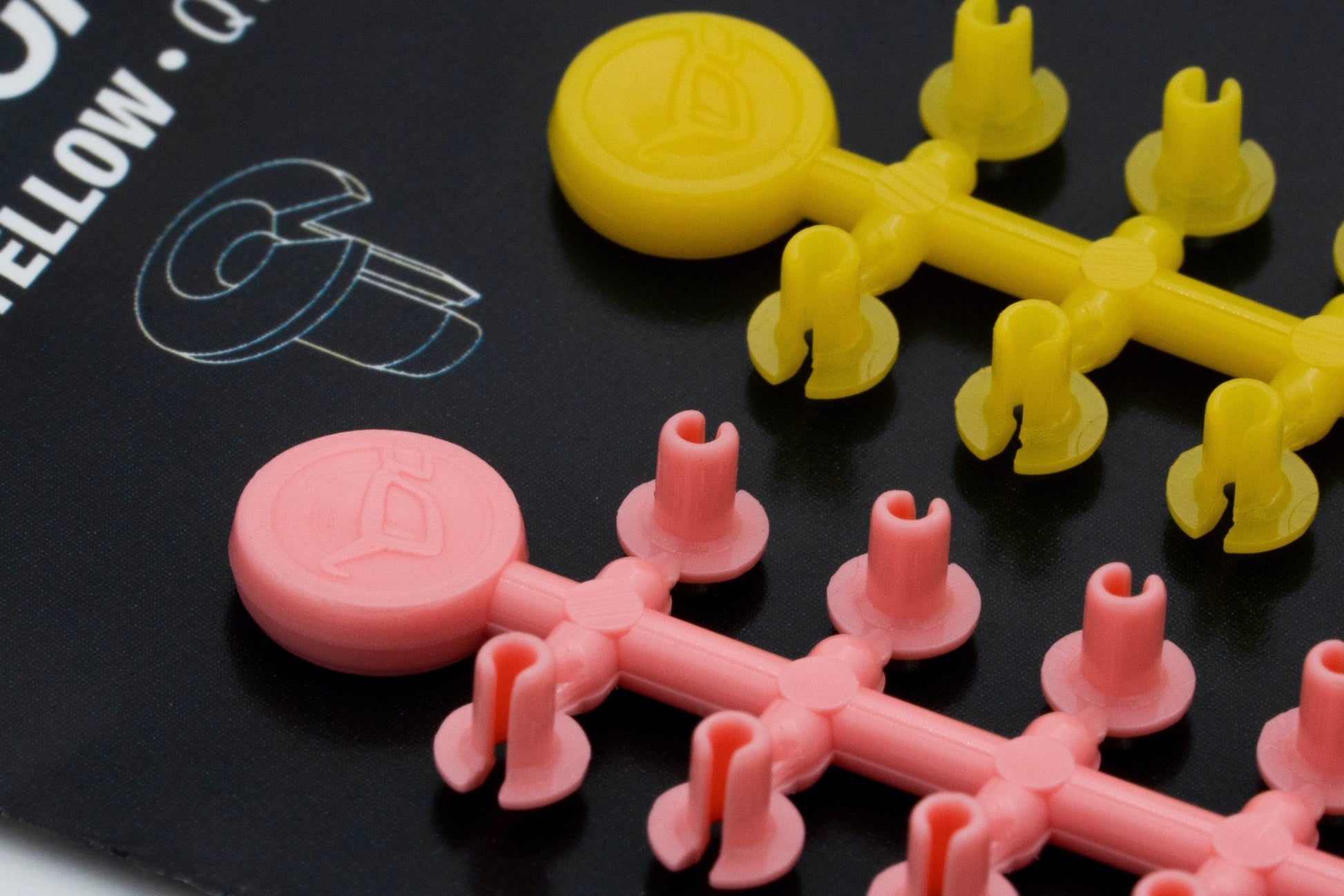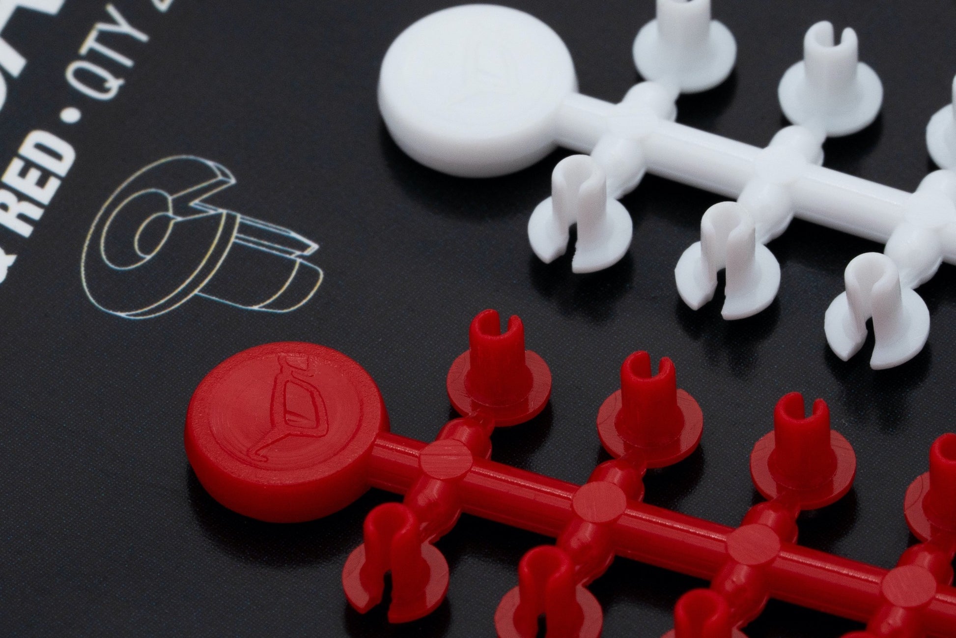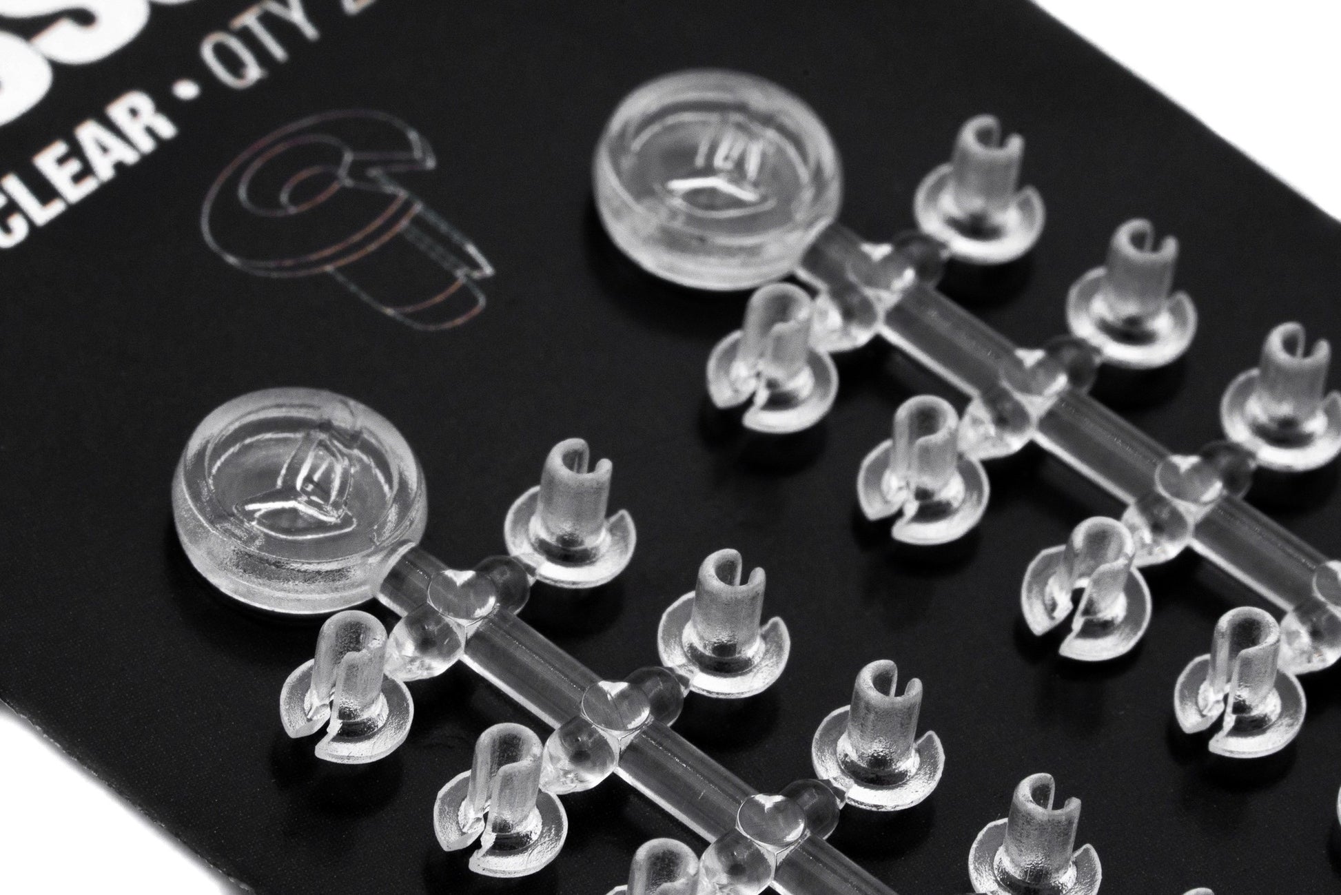 A lot of modern rigs involve tying your bait onto a rig ring or micro swivel with Bait Floss, and this can be fiddly, especially in the dark or with cold fingers. Floss Caps remove all the hassle from attaching your bait though, as you simply thread one on to the tag ends of Bait Floss - once you’ve used a baiting needle to mount your hookbait on the floss – push it into the bait until it sits flush to it, and then user a lighter to blob the ends of the floss to hold the Floss Cap securely in place. Three different colour combinations of Floss Caps are available, to either match your hookbait or add a splash of colour – clear; red/white; or pink/yellow. They come attached to a central holder and are simply twisted to detach the individual Floss Cap as you need it. Each pack contains 20 Floss Caps – ten of each colour.