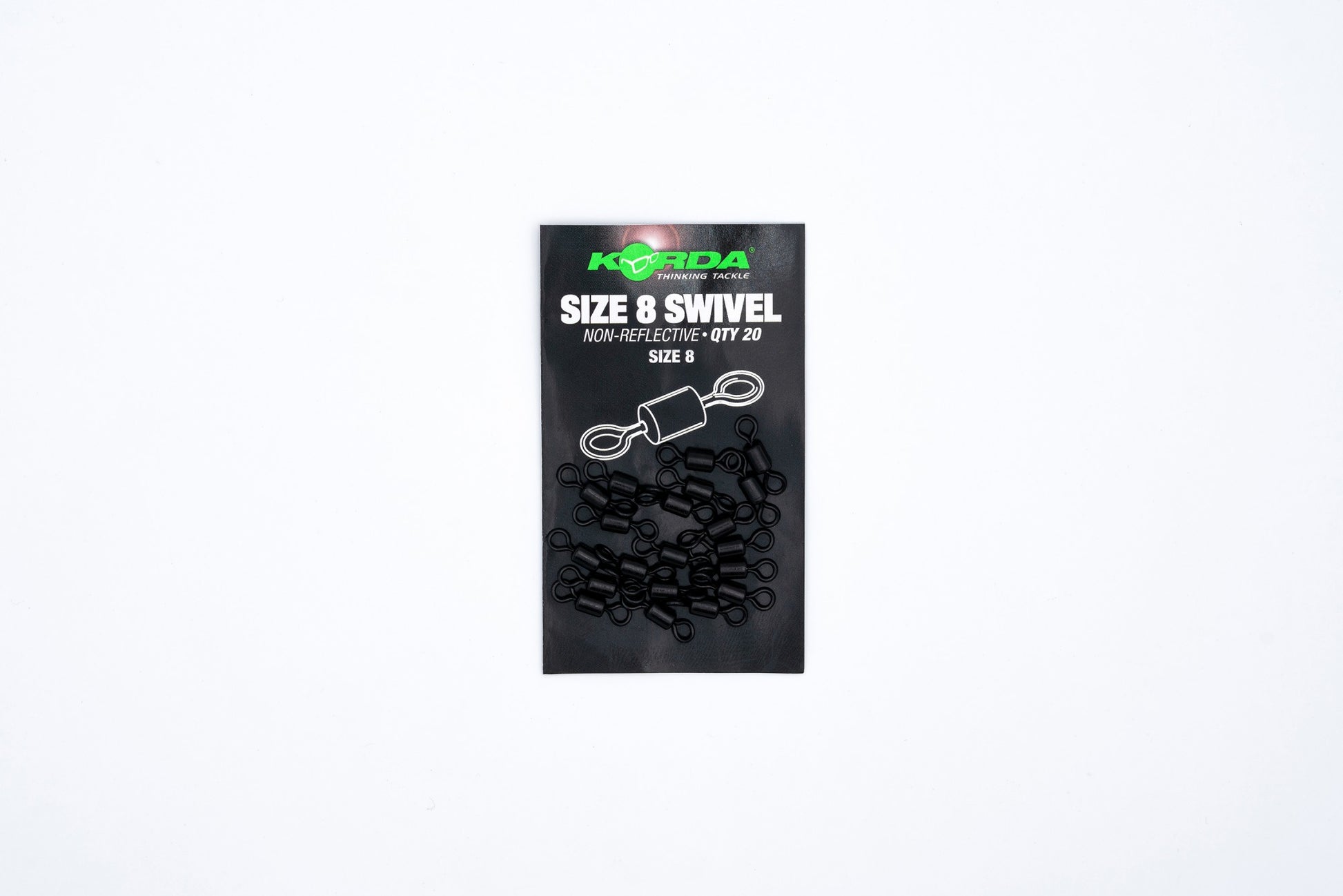 The humble swivel completes the whole rig set up and since it is almost the last connection between you and the carp, it needs to be reliable. These very strong and reliable round-eyed swivels come from Japan, and have a lovely dull grey finish to them. They are compatible with all of the other Korda rig bits, perfectly fitting the Lead Clips, Inline Lead and Shock Beads, amongst other items. They come in a pack of 20.