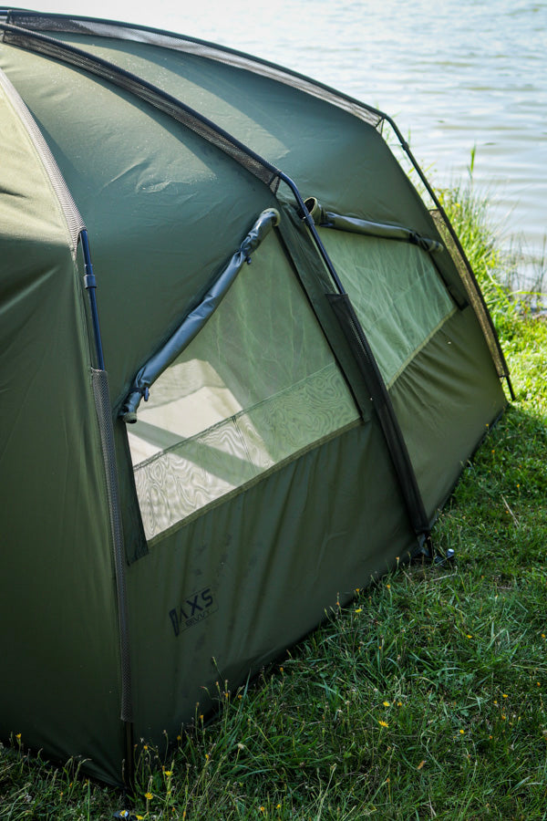 - Super strong AXS centre hub for ultra-quick setup 10,000mm HH Cloudbase™ fabric Flat back, steep sided shape to maximize internal space Perfectly sized to cover levelbed and kit Lightweight anti-twist 6061 aluminium poles Peaked front with rain drip guard for extra protection 2 large rear mozzy vents with internal pockets Dual rod straps and storm pole connectors Supplied with Oversize compression bag and heavy-duty T-pegs