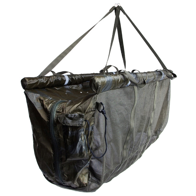 Sonik Bank-TEK Floating Weigh Sling, Available in standard and large size, the Bank-Tek Floating Weigh Slings have been designed as dual-purpose floating weigh sling and short-term fish retainer. Full mesh sides and base are quick draining and sculpted to hold the fish centrally. The top and end panels are 210D PU backed material to help keep the fish calm in the water. All handles are double reinforced and are constructed to give maximum support. There are also four night-sight reflective patches on the full-length floats and the sling is also supplied with a 5m extension cord with bankstick attachment. These weigh slings offer everything you could need for safe and convenient weighing and short-term fish retention. STANDARD: ASSEMBLED: L 110 x D 35 x H 50CM / TRANSPORT: L 110 x D 10cm LARGE: ASSEMBLED: L 130 x D 40 x H 65CM / TRANSPORT: L 130 x D 10cm
