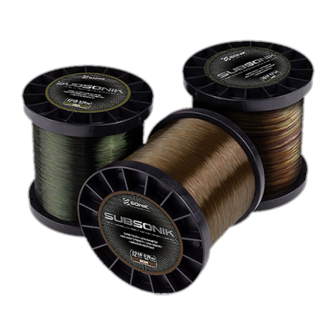 SUBSONIK is available on 1200m value spools and 3000m bulk spools… in brown, green and camo colours, and in five different diameters to cover all aspects of carp fishing.
