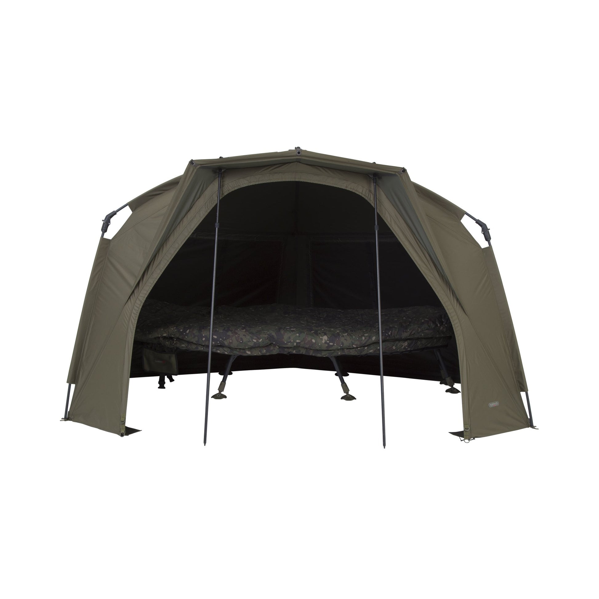 The quickest, "easy-erect" shelter just got even better with the introduction of the phenomenal Tempest Rapid Shelter. At the core of the bivvy is the renowned patented hinge block, allowing for ease and speed of set-up. The set-up time, usability and functionality have all been enhanced even further with the Rapid Knuckle System, enabling all five main poles to lock into position in one effortless action. Simple and secure, erecting your shelter has never been easier. Additional Rapid Shelter enhancements include a built-in peak to minimise water ingress in and around the door and this peak can be increased even further to allow even more coverage with the addition of a Skull Cap. The rear of the shelter has been made flatter than its predecessor, striking an optimal balance between internal storage space, the ability to fit into swims and aerodynamics. Airflow through the shelter has been improved with Adaptive Ventilation® on six vents (four on the rear and two on the front), facilitating air flow even when it is raining. To help stay cooler in the hight of summer, the four rear vents can be pegged out to create areas of shade, which, when used in partnership with a Skull Cap, can reduce the internal temperature by several degrees. For optimal storage, there are four internal pockets, two on each side and two at the front. Those at the front have a hanging loop where you can store essentials such as your receiver or even your jacket for a speedy exit in inclement weather conditions.