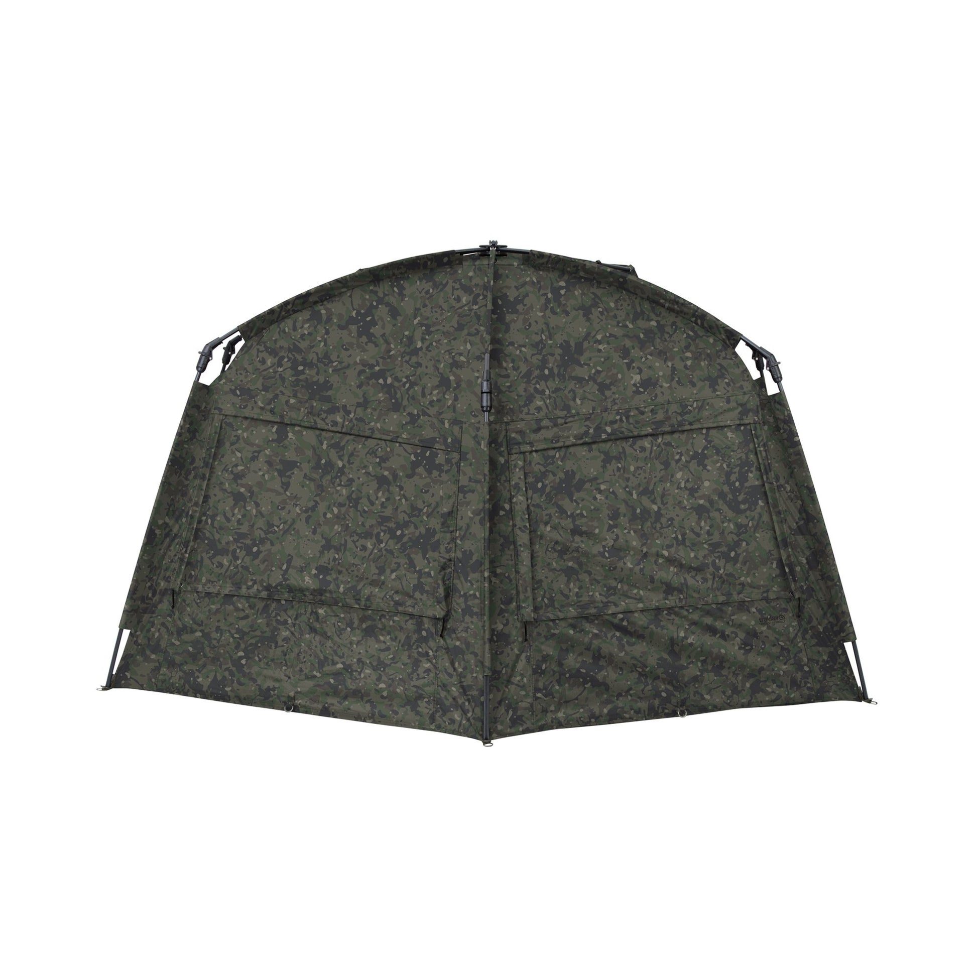 The quickest, "easy-erect" shelter just got even better with the introduction of the phenomenal Tempest RS Brolly Camo. At the core of this one-man fishing bivvy is the renowned, patented hinge block, allowing for ease and speed of set-up. The set-up time, usability and functionality have all been enhanced even further with the Rapid Knuckle System®, enabling all five main poles to lock into position in one effortless action. Simple, secure and strong, erecting your shelter has never been easier. Additional Rapid Shelter enhancements include a built-in peak to minimise water ingress in and around the door and this peak can be increased even further to allow even more coverage with the addition of a Skull Cap. The rear of the shelter has been made flatter than its predecessor, striking an optimal balance between internal storage space, the ability to fit into swims and aerodynamics. Airflow through the shelter has been improved with Adaptive Ventilation® on six vents (four on the rear and two on the front), facilitating air flow even when it is raining. To help stay cooler in the hight of summer, the four rear vents can be pegged out to create areas of shade, which, when used in partnership with a Skull Cap, can reduce the internal temperature by several degrees. For optimal storage, there are four internal pockets, two on each side and two at the front. Those at the front have a hanging loop where you can store essentials such as your receiver or even your jacket for a speedy exit in inclement weather conditions.