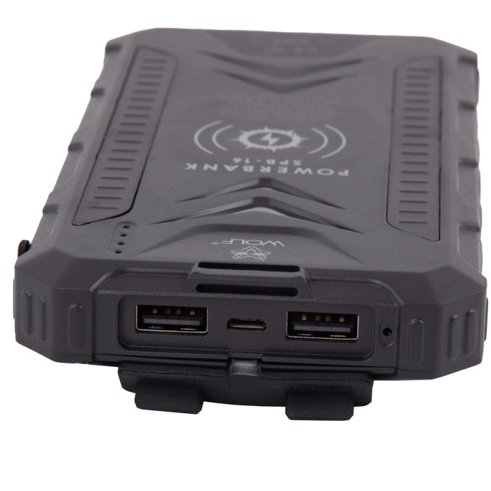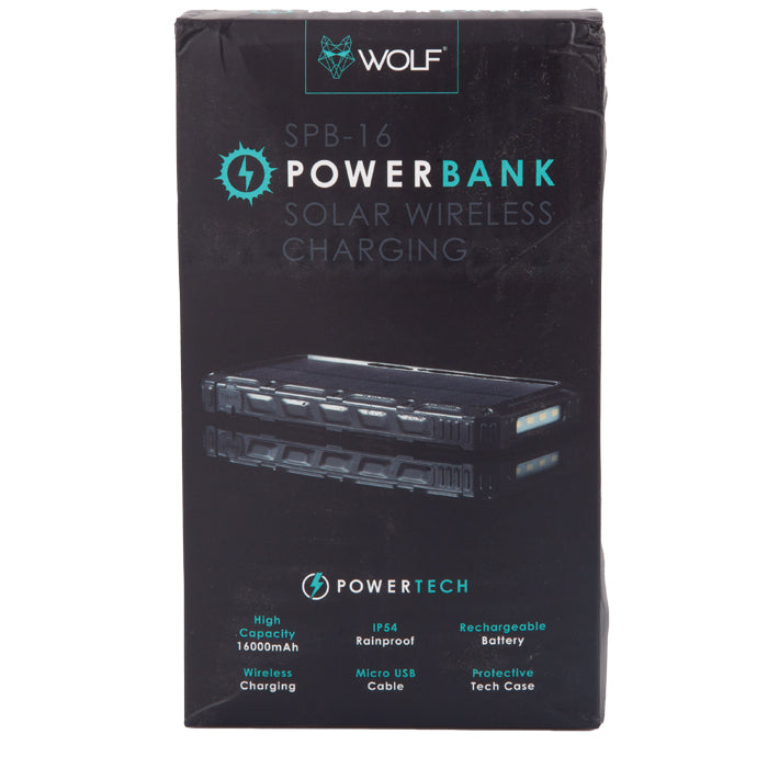 Wolf's SPB 16 Solar Powerbank has a built-in high capacity of 16000mAh and comes with an included solar charger that can provide you endless power! You'll be able to charge your phone or any other devices wirelessly, so no more worries about running out during the day. There are also wired charging options with the USB charging options for all your devices so you are able to charge 3 devices at once!